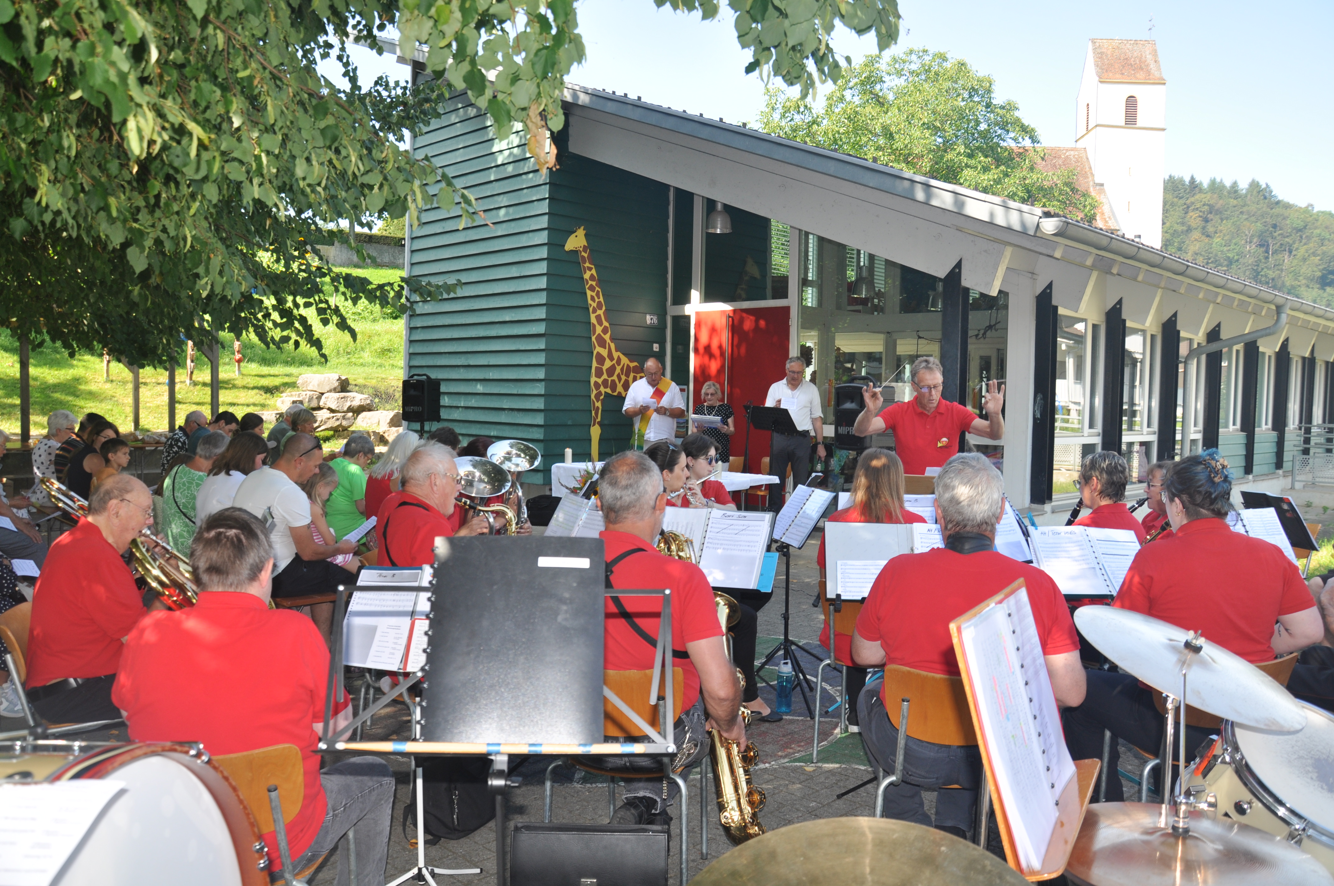 (sw) Bei prachtvollem Wetter fand am Sonntag in Hornussen ein ökumenischer Schulstartgottesdienst statt. Dank den schattenspendenden Bäumen beim Kindergarten war die Hitze erträglich. Umrahmt wurde die Feier von der Musikgesellschaft Hornussen. Gestaltet wurde sie von Pfarrer Volker Houba, Diakon Andreas Wieland und der Katechetin Sabine Wülser. Die Thematik: «MUT TUT GUT» zog sich wie ein roter Faden mit passenden Liedern, Texten und der biblischen Geschichte: «JOSUA» durch den Gottesdienst. Josua bekam von Gott die Zusage: «Sei mutig und stark. Hab keine Angst und lass dich durch nichts erschrecken, denn ich dein Gott, bin bei dir, wohin du auch gehst». Am Schluss bekamen alle Kinder als Erinnerung ein «MUT TUT GUT» Päckchen geschenkt. Mit dem Bleistift können sie mutig die beiliegende Karte verzieren und wenn es nicht gefällt, wieder mutig mit dem Radiergummi ausradieren. Unter klangvollen Tönen der Musikgesellschaft Hornussen endete dieser eindrückliche Gottesdienst.