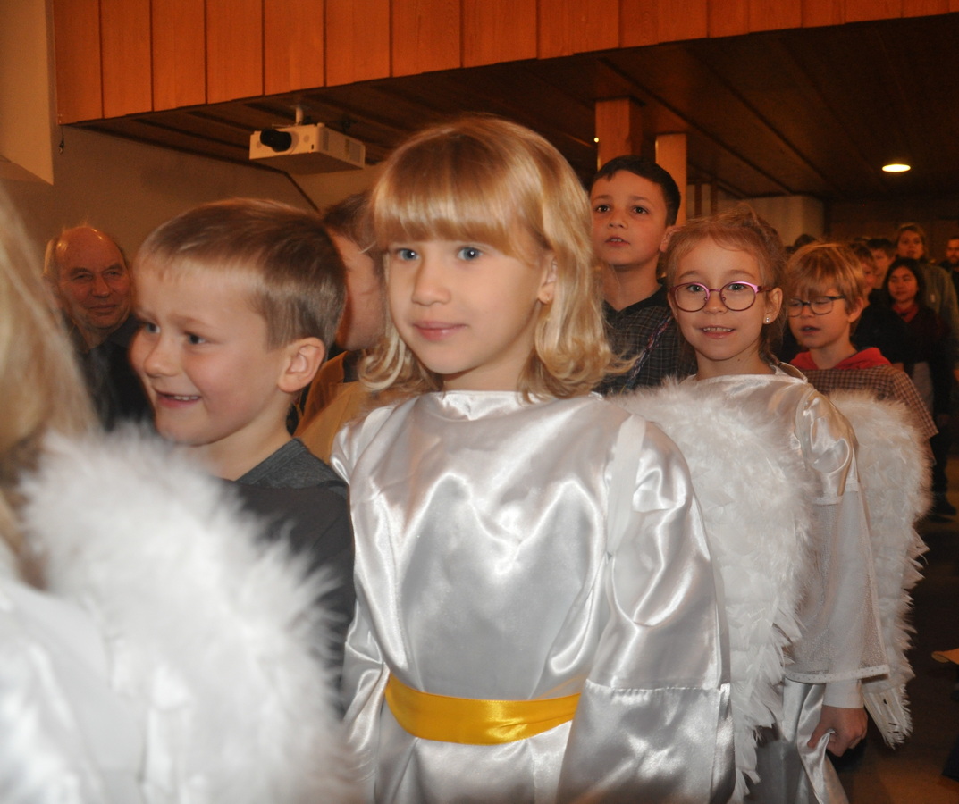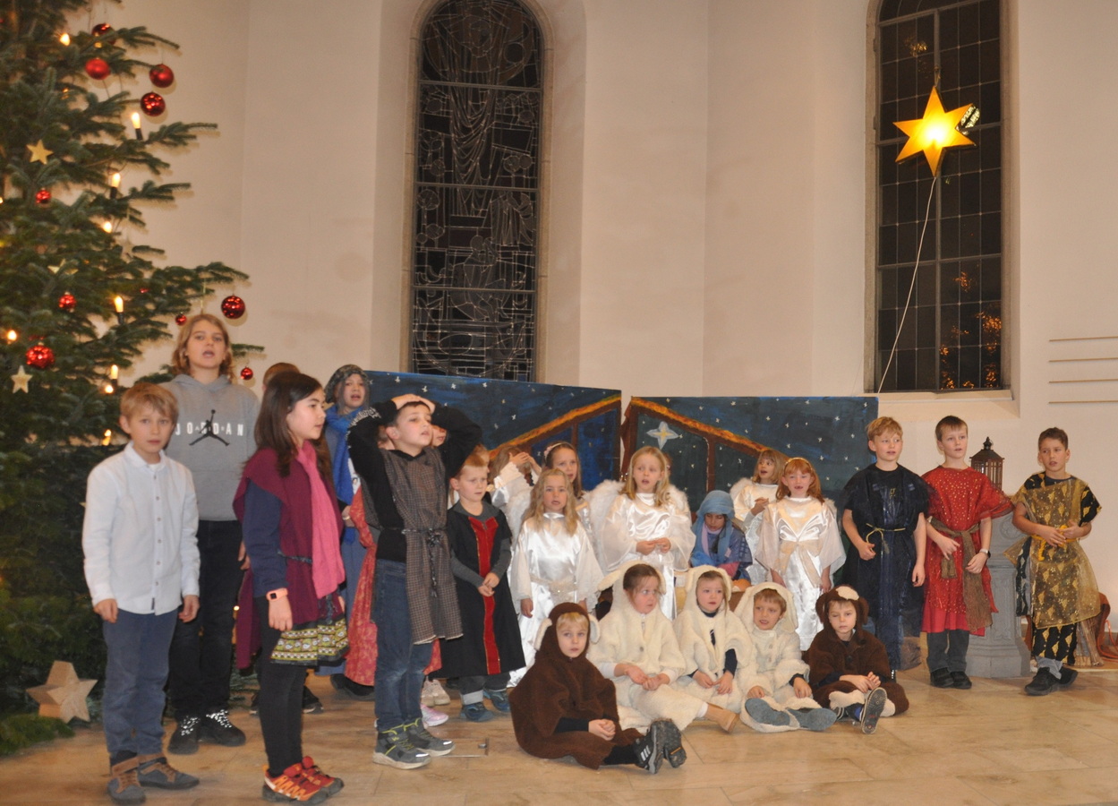 Es war eine spezielle Stimmung, als die 30 Kinder mit ihren Leiterinnen mit dem Lied „Friede uf Ärde“ in die weihnächtlich geschmückte Kirche einzogen.