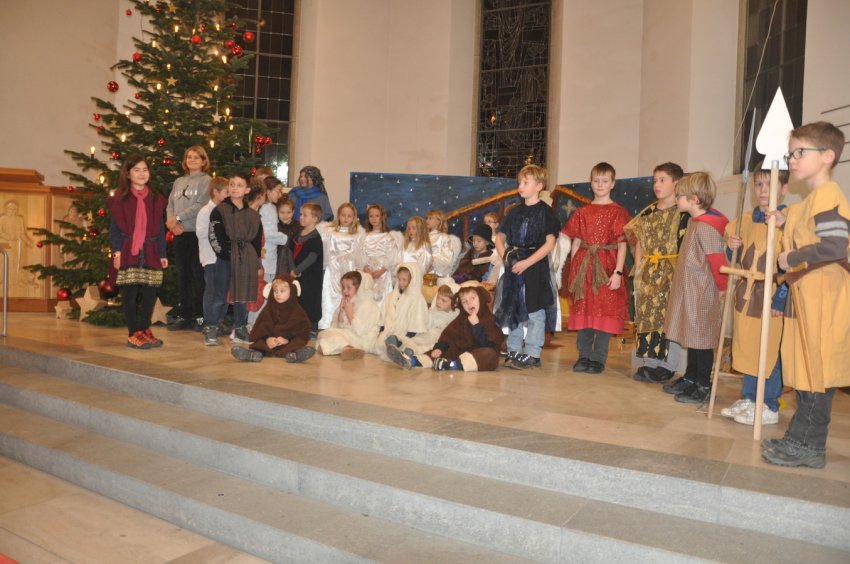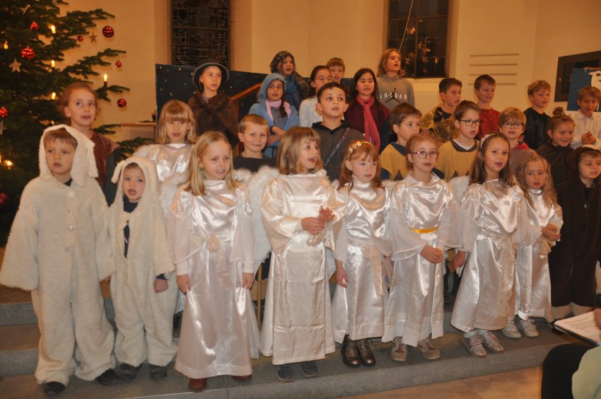 Es war eine spezielle Stimmung, als die 30 Kinder mit ihren Leiterinnen mit dem Lied „Friede uf Ärde“ in die weihnächtlich geschmückte Kirche einzogen.